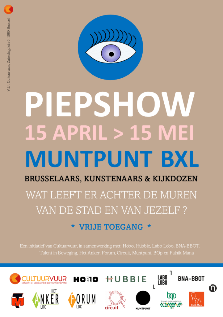 PIEPSHOW is een initiatief van Cultuurvuur, in samenwerking met Hobo, Hubbie, Labo Lobo, BNA-BBOT, Talent in Beweging, Het Anker, Forum, Miro, Circuit, Muntpunt, BOp en Palhik Mana