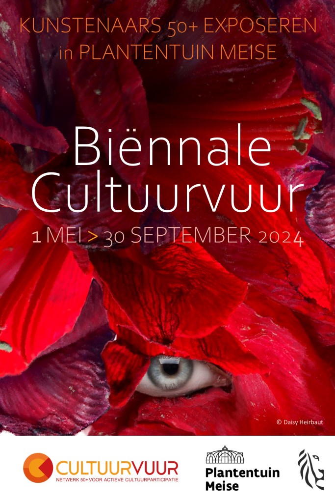 Biënnale Cultuurvuur vzw en Plantentuin Meise. Van 1 mei tot 30 september 2024 presenteren Plantentuin Meise en Cultuurvuur vzw voor de vierde maal een verrassende expo kunst 50+. Op verschillende locaties in Plantentuin Meise, binnen én buiten, worden voor een periode van 5 maanden allerlei kunstdisciplines tentoongesteld die in dialoog staan met hun omgeving. Hiervoor worden 40 kunstenaars (of kunstencollectieven) 50+ gedurende 10 maanden uitgedaagd om een kunstwerk te maken voor een specifieke plek in de Plantentuin Meise.