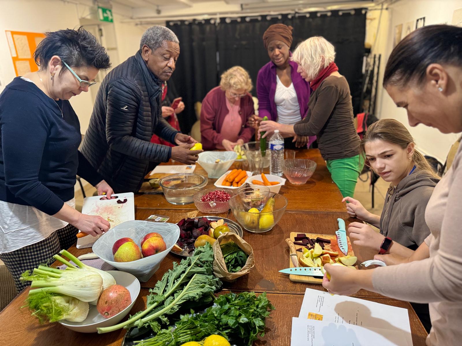 Cultuurvuur, kookcultuur, eetcultuur,… We gingen de culinaire toer op met het maken en proeven van heerlijke natuurlijke sappen. Een workshop met onverwachte ontmoetingen, veel nieuwsgierigheid en enthousiasme. In samenwerking met Arthis, Het Belgisch-Roemeens Cultureel Huis in Brussel.