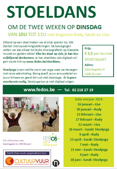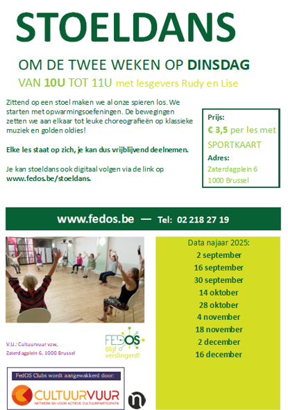 Beschrijving: FedOS Optimaal Ouder Worden organiseert dynamische bewegingssessies waarin senioren actief aan de slag kunnen gaan, ook al zijn ze iets minder mobiel. Naast beweging is ook gezellig samenzijn via allerlei activiteiten belangrijk.