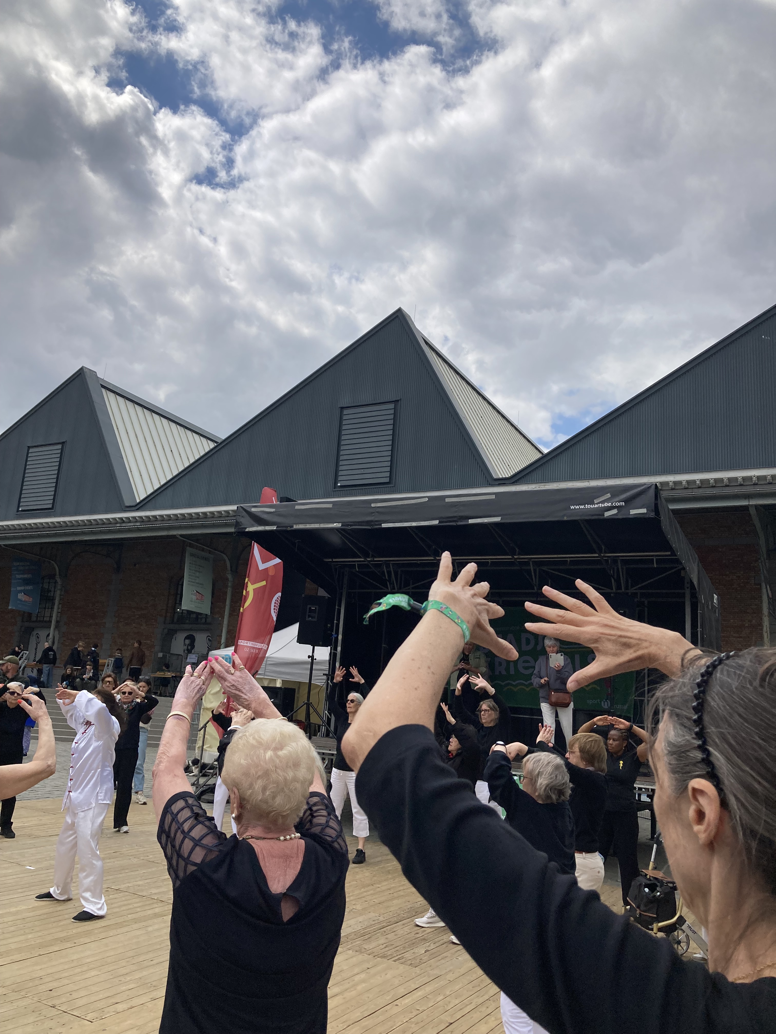 04/05/25: Stadskriebels in Tour & Taxis: we konden genieten van de actieve participatie van FedOS Anderlecht met lijndans en Qigong. En van de vele andere activiteiten op de site van T&T.
