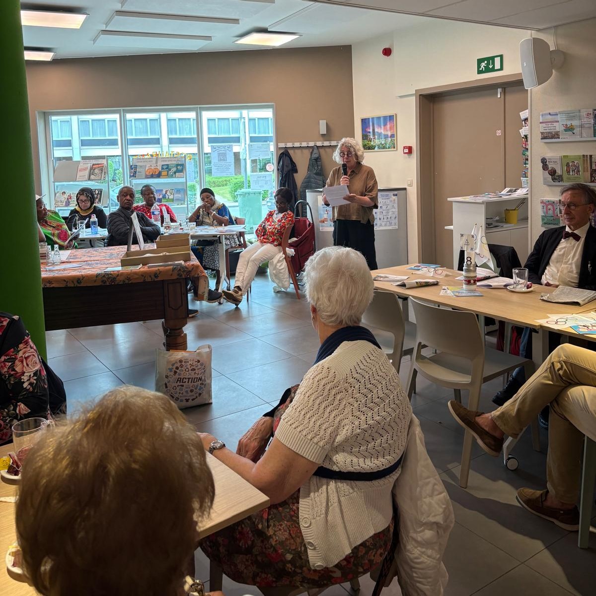 Met een 80-tal personen kwamen we afgelopen vrijdag bijeen in GC Elzenhof voor het event Niet Alleen, maar SAMEN. De dag startte met een boeiende lezing van Jan Claeys van Odisee hogeschool over de verschillende kanten van eenzaamheid. Daarna konden de deelnemers kiezen uit verschillende workshops zoals levensverhalen, eenzaamheid in de buurt, werken aan talenten of Tai Chi. Tijdens de workshop en tijdens de infomarkt kon men kennismaken met een uitgebreid diensten- en activiteitenaanbod. Mogelijkheden genoeg in Brussel om met andere in contact te komen! We konden op het terras genieten van een heerlijke lunch en sloten de dag af met muziek uit verschillende culturen en een dansje. ![]()