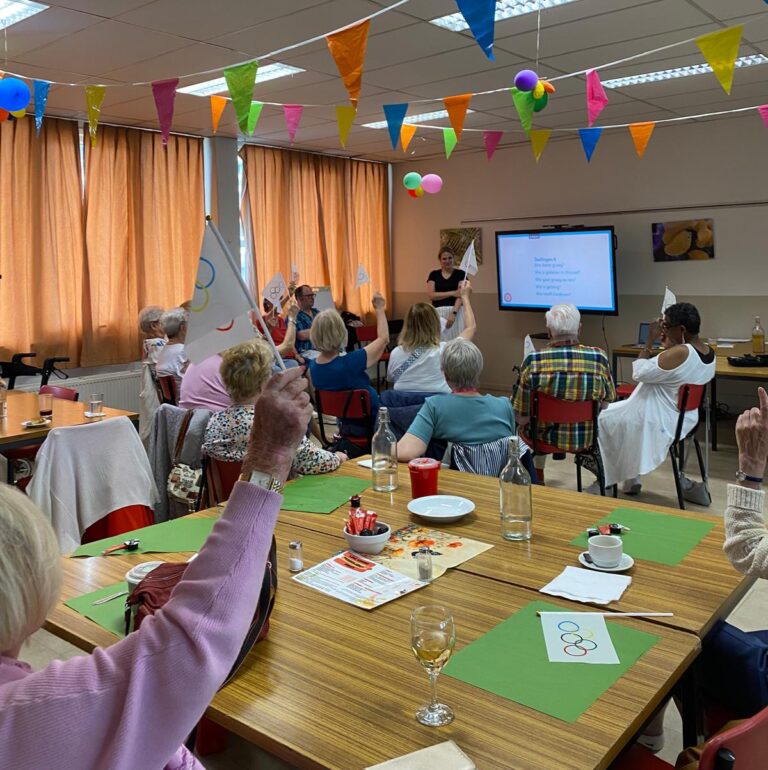 Tijdens deze activiteit werd teruggeblikt naar alle thema’s waar het afgelopen jaar activiteiten rond georganiseerd hebben: gezonde voeding, migratie, dementie, eenzaamheid en participatie. Er was een workshop rond gezonde voeding met de voedingsdriehoek, dialoogtafels over dementie, migratie en eenzaamheid en participatie-tafel waar men zijn stem kon laten horen over de noden en behoeften van ouderen in Brussel.