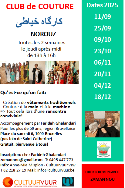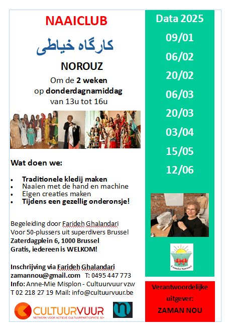 Beschrijving: NaaiClub “NOROUZ” komt om de 2 weken samen op dondernamiddag om traditionele kledij te maken.