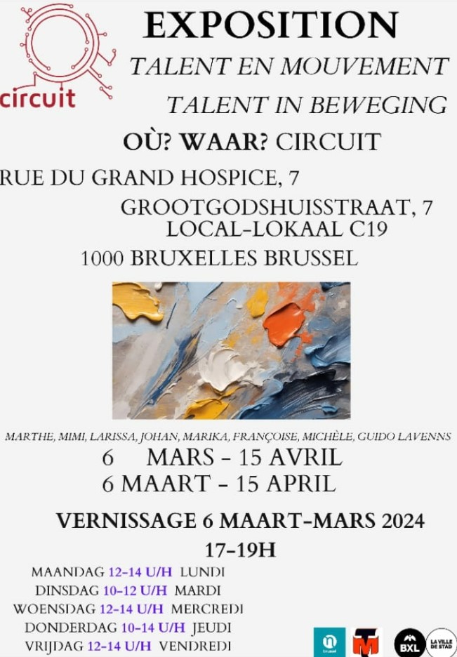 Woensdag 06/03/24 om 17u00 Vernissage van de tentoonstelling van “Talent in Beweging” in rue du Grand Hospice 7, 1000 Brussel.